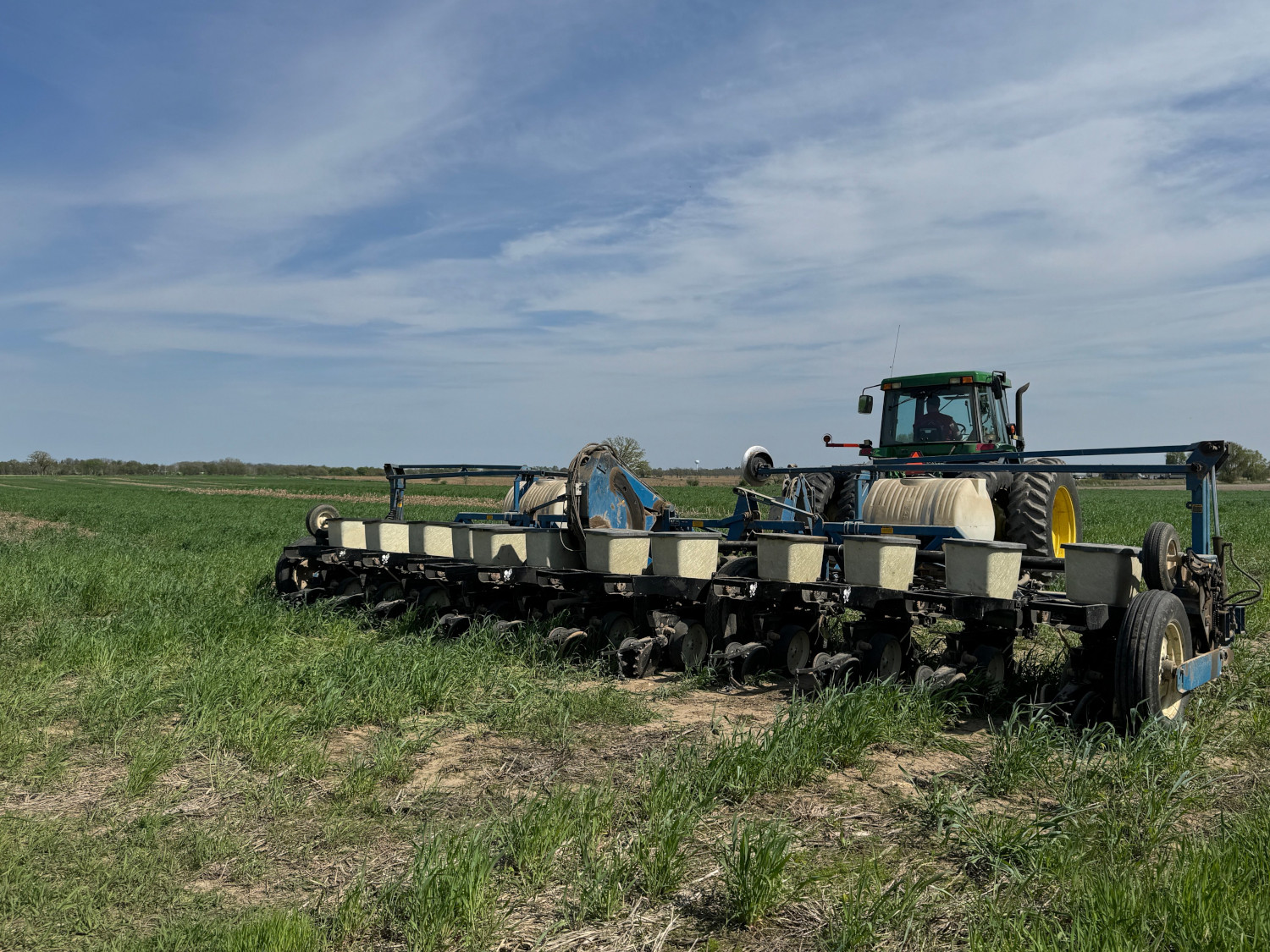 Farmer in southern Wisconsin planting soybean green (picture taken May 07 2025).